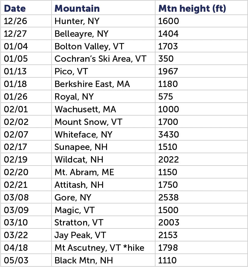 Whiteface is on Friday to reach the 20,000 ft mark and hope to finish the 30,000 ft mark at Gore mtn March 8th… with half a dozen more mountains in between. We hope to get to Maine over winter break week from school because I haven’t been to that state yet.